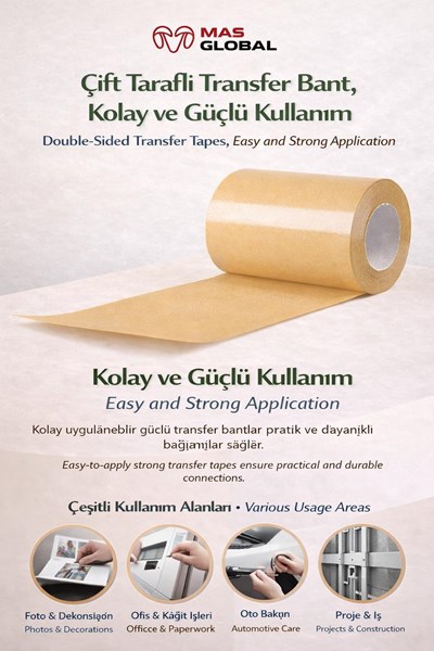 Su bazlı akrilik tutkallı ağ takviyeli transfer bant, çevreci formülü ve hafif-orta seviyedeki yapıştırma gücüyle öne çıkan bir çözümdür. İçerisindeki file (mesh) takviye, bantın düzgün uygulanmasını ve formunu korumasını sağlarken; su bazlı akrilik tutkallı yapısı sayesinde düşük VOC değerleriyle çevre dostudur.
